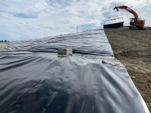 Layfield worked with the owner’s engineer to build a customized cover designed specifically for the site’s demanding environmental and structural conditions. Central to the solution was the selection of Enviro Liner® 6040 Geomembrane, chosen for its outstanding chemical resistance and long‑term durability. This high‑performance material blends the benefits of LLDPE and HDPE resins, enhanced with an advanced stabilization package that delivers superior resilience, UV stability, and extended service life—making it ideal for challenging containment environments.